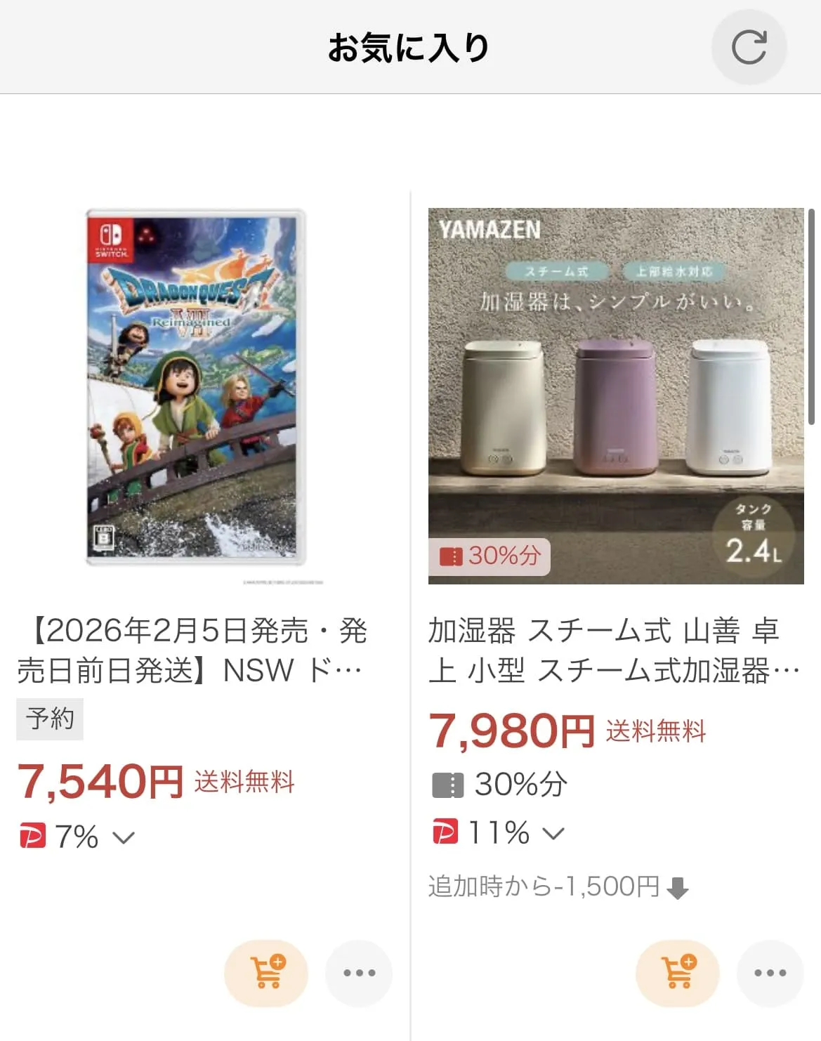 対象の商品をお気に入りにおけば簡単に、現在のポイント還元率が確認できます。
