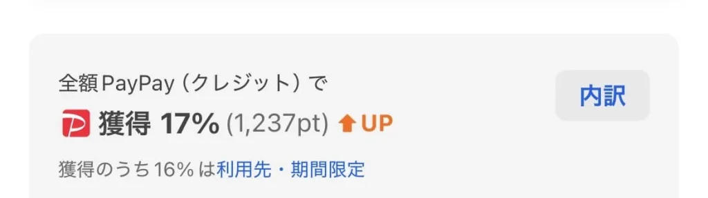 | PayPay(クレジットカード) | 全額ポイント払い |