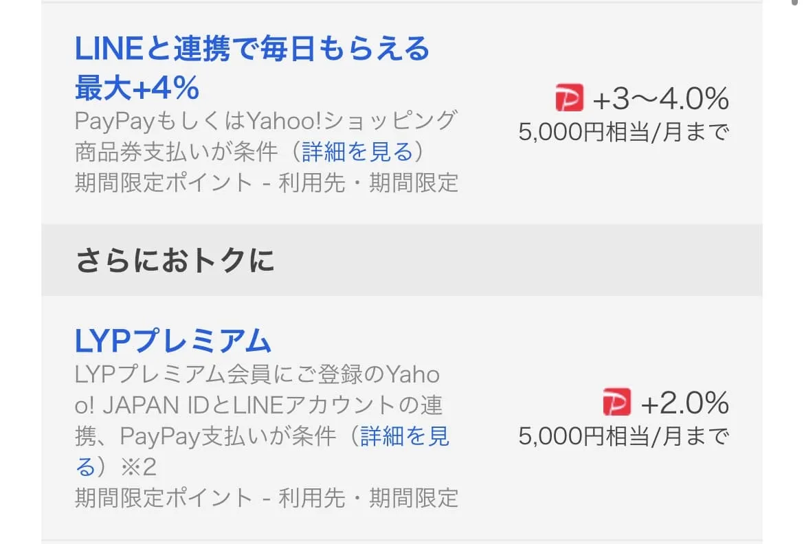 例えば「LYPプレイミアム2%」キャンペーンには、付与上限(例:月間5,000ポイントなど)が設定されています。