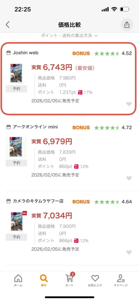 環境さえ整えれば、Amazonの表示価格より実質1,000円〜2,000円安く買えることがよくあります。