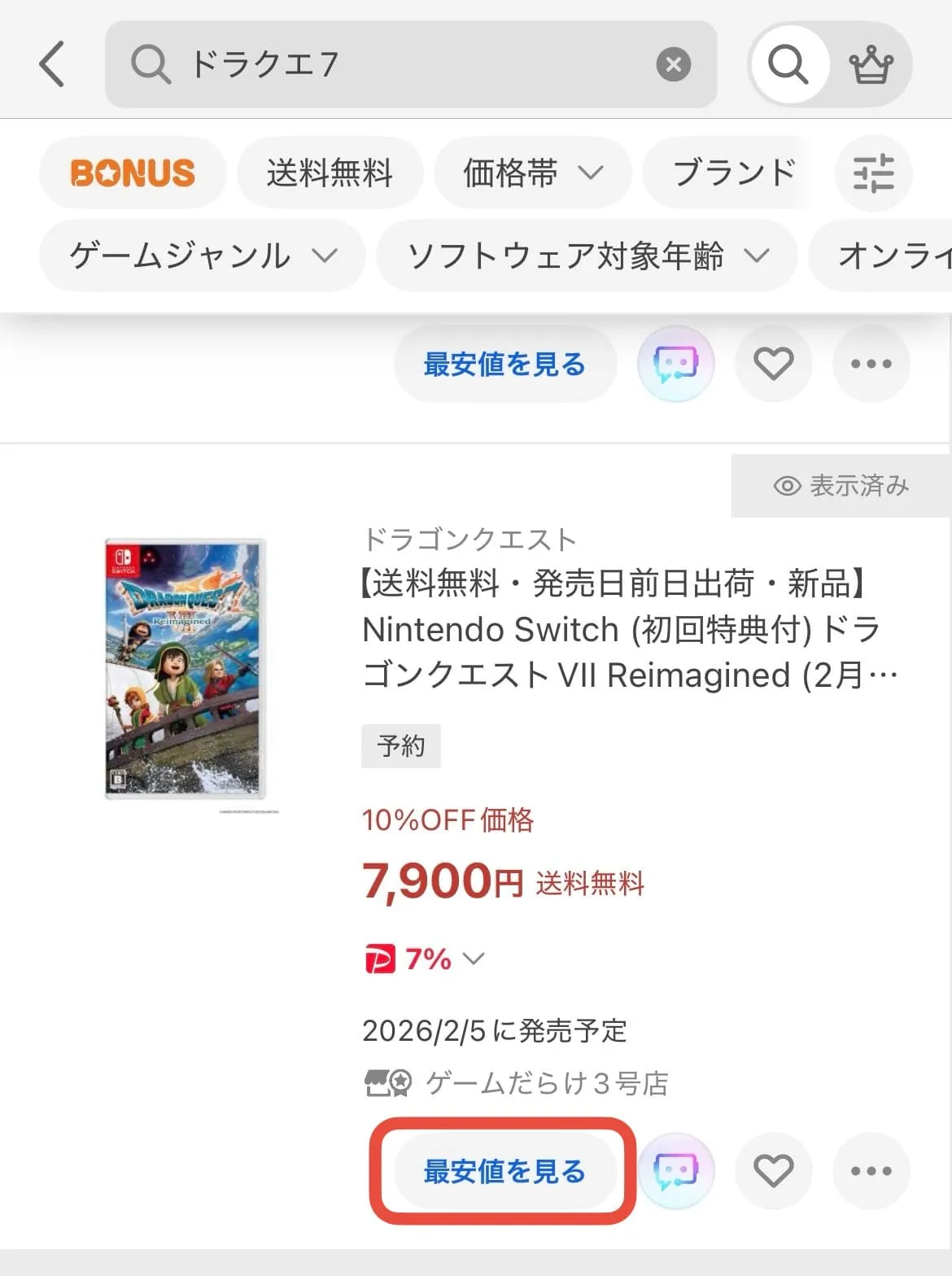ドラゴンクエストVII Reimagined(定価8,778円)をシュミレーション